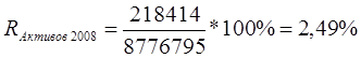 Данный показатель отражает внутреннюю политику банка. Банк эффективно использует свои ресурсы в том случае, если значение показателя не меньше 1%. В 2008 году значение показателя было 2,49%, а, следовательно, банк эффективно использовал ресурсы. В 2009 году, в связи с убытком, данный показатель не рассчитывается.