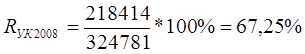 Данный показатель характеризует экономическую отдачу капитала. Банк работает эффективно, когда значение данного показателя не менее 15%. Таким образом, рентабельность уставного капитала в 2008г. составила 67,25%, что соответствует норме. В 2009 году, в связи с убытком, рентабельность уставного капитала не рассчитывается.
