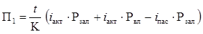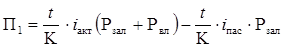Прибыльность капитала (R 1к) вычисляется как отношение суммы чистого процентного дохода (П1) к балансовому капиталу банка согласно балансу (К)