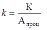 Достаточность капитала (k) определяется отношением объема капитала (К) к остаткам процентных активов (Апроц)