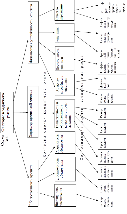 Комплекс факторов, оказывающих влияние на степень кредитного риска, изображен на схеме №2. "Факторы кредитного риска".