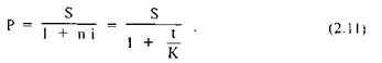 Рассмотренную операцию называют дисконтированием по простой ставке процентов. Термин “дисконтирование” в широком смысле означает определение значения стоимостной величины Р на некоторый момент времени при условии, что в будущем оно будет равно заданному значению S. Подобные расчеты называют также приведением стоимостного показателя к заданному моменту времени, а значение Я, определенное дисконтированием S, называют современным, или приведенным, значением стоимостной величины. Дисконтирование позволяет учитывать в финансово-экономических расчетах фактор времени.