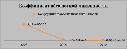 Коэффициент абсолютной ликвидности является наиболее жестким критерием ликвидности. Он показывает, какая часть краткосрочных обязательств может быть при необходимости погашена немедленно за счет высоколиквидных средств и рассчитывается по формуле: