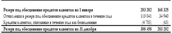 Ниже представлен анализ изменений резерва под обесценение кредитов и авансов клиентам за год: