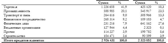 Ниже представлена структура кредитного портфеля Банка по отраслям экономики:
