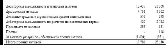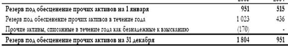 В таблице ниже представлены изменения резерва под обесценение прочих активов: