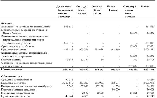 Приведенная ниже таблица показывает распределение активов и обязательств на 31 декабря 2005 года по срокам, оставшимся до востребования и погашения.