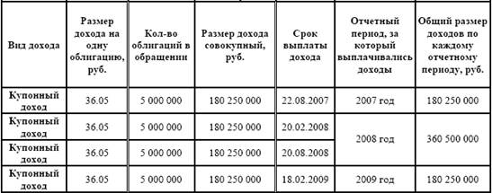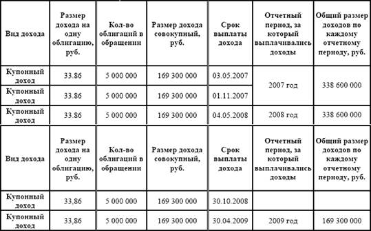 Условия выплаты дохода по облигациям выпуска: Выплата дохода по Облигациям производится в пользу владельцев Облигаций, являющихся таковыми по состоянию на конец операционного дня Депозитария, предшествующего 5 (Пятому) рабочему дню до даты выплаты дохода по Облигациям.