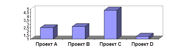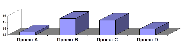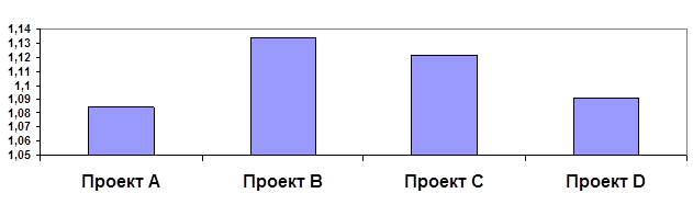 Индекс рентабельности инвестиций проекта А составит 1,084, проекта В - 1,134, проекта С - 1,121, проекта D - 1,091 (рис. 2.4).