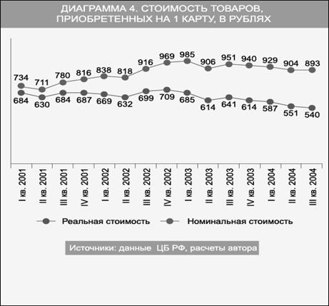 Диаграмма 4. Стоимость товаров, приобретенных на 1 карту[27]