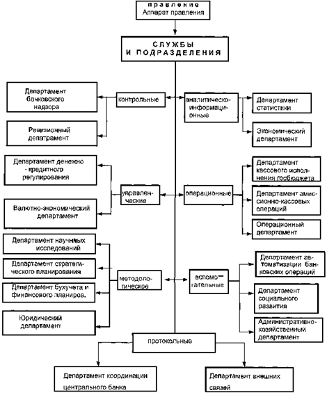 Соответственно в основной своей массе вновь созданные коммерческие банки имеют оргструктуру бесфилиального банка с небольшим количеством функциональных подразделений: кредитный, коммерческий и административно-хозяйственный отделы, отдел кассовых операций (в банках, осуществляющих кассовое обслуживание клиентов), бухгалтерия. В банках, получивших лицензию на осуществление валютных операций, создаются соответствующие подразделения для осуществления операций в иностранной валюте.