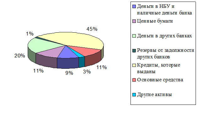 Основной частью активов банков (44.8%) является кредитный портфель. За 2005 год он увеличился на 32.3%. Увеличение произошло в основном за счет роста объемов кредитов, предоставленных субъектам хозяйствования, (на 25.7%); кредитов, предоставленных физическим лицам (на 64.4%); кредитов, предоставленных другим банкам и срочных депозитов, размещенных в других банка и в НБУ (на 48.1%).