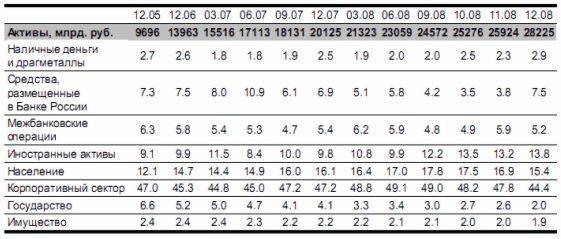 Российский банковский сектор по итогам 2008 г. неожиданно достиг вполне приличных для кризиса темпов роста активов в 40%, что ненамного ниже результатов двух предшествующих лет (по 44%). Неожиданным этот результат оказался по нескольким причинам.