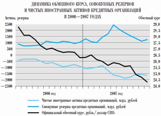 В первом полугодии 2007 года, в период высокого уровня ликвидности, при проведении денежно-кредитной политики Банк России стремился минимизировать инфляционные последствия роста денежного предложения. Снижение ставки рефинансирования и повышение процентных ставок по инструментам абсорбирования ликвидности позволили сузить ширину коридора процентных ставок по операциям Банка России с 8,75 до 7,50 процентного пункта, а уровень ставок межбанковского рынка по однодневным кредитам, предоставленным в рублях в этот период, находился в диапазоне 2 — 7,45% годовых.