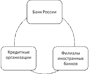 Современная банковская система России включает в себя Банк России, кредитные организации, филиалы и представительства иностранных банков. Таким образом, отечественная банковская система построена по двухуровневому принципу, что схематически может быть представлено следующим образом:
