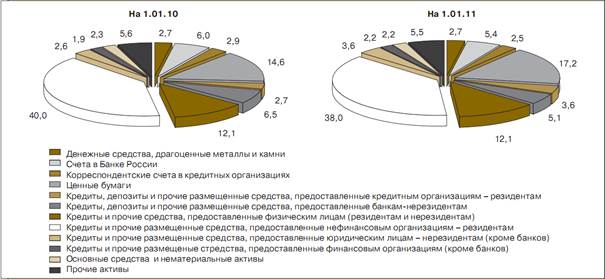 В первом полугодии 2010 года рост активов поддерживался в основном вложениями в ценные бумаги. Эта тенденция сложилась в условиях относительно стабильной ситуации на фондовом рынке, а также желания банков размещать средства в более ликвидные по сравнению с кредитами активы. Со второго полугодия рост вложений в ценные бумаги стал замедляться на фоне восстановления интереса банков к кредитованию нефинансового сектора экономики. За год объем портфеля ценных бумаг вырос на 35,3% (в 2009 году – на 82,2%) .
