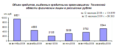 Рис. 2.1. Объем кредитов, выданных кредитными организациями Тюменской области физическими лицами в российских рублях