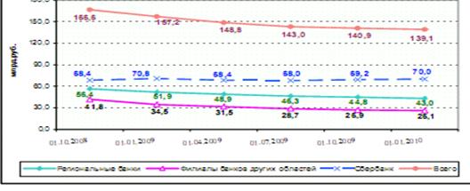 Депозиты юридических лиц за 2009 год возросли на 32,0% и на 1 января 2010 года достигли 116,1 млрд. рублей. Наибольший прирост отмечен на счетах филиалов банков других регионов – 42,7% или 23,0 млрд. рублей.