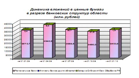 Рис. 2.3. Динамика вложений в ценные бумаги в разрезе банковских структур области