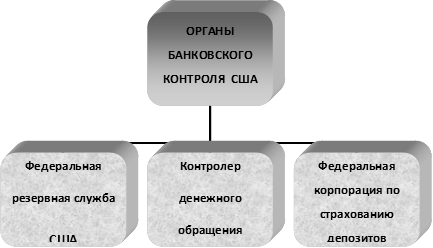 Финансовая система США является одной из наиболее жестко регулируемых как на федеральном уровне, так и на уровне штатов. Наиболее существенную роль в регулировании деятельности банков играют три органа представленные на рисунке 5.