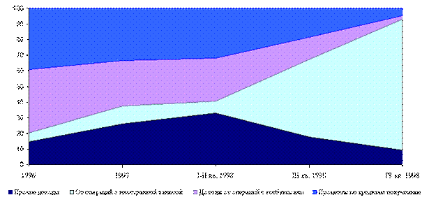 Резкое снижение цен на традиционные экспортные товары или резкий рост стоимости импорта означает для страны потерю валютных доходов. Кроме того, снижение доходов экспортеров может принести обслуживающим им банкам |