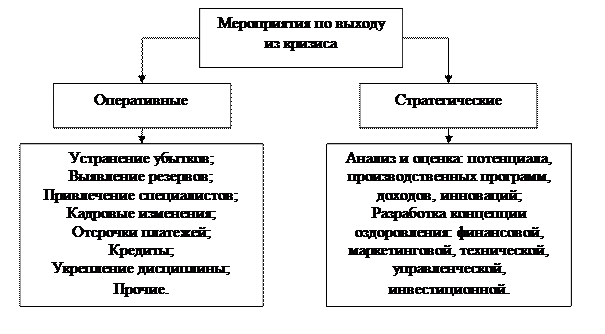 Как видно из рисунка 2 все используемые мероприятия по выходу из кризиса можно разделить на оперативные и стратегические [23, c. 15].