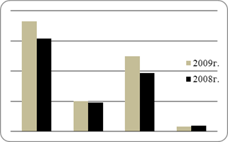 Положительная тенденция наблюдается у статьи чистых вложений в инвестиционные ценные бумаги, удерживаемые до погашения. Так в 2008 году никаких вложений не было, а в 2009 г. они составили 6 109 347 тыс. руб. и тем самым немного улучшил состав активов.