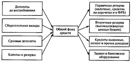 В первую очередь банк формирует резервы — первичные и вторичные. В балансе эти резервы не выделяются отдельными строками. Это ликвидные средства, которые размещены в форме наличных денежных средств, средств на счетах в банках-корреспондентах, в Федеральном резервном банке; в высоколиквидные государственные или муниципальные ценные бумаги, в отдельных случаях — в кредиты (с ближайшим сроком погашения до 30 дней, в кредиты до востребования).