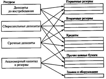 Кроме того, на практике не бывает предполагаемой независимости источников ресурсов от их распределения. Привлечение крупного клиента, имеющего депозиты до востребования, чековые счета, как правило, подразумевает и выдачу этому клиенту кредитов, причем не только краткосрочных.