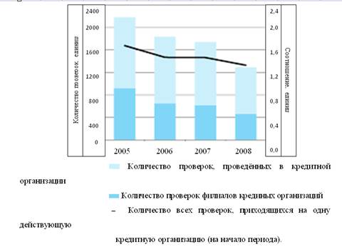 В 2008 году было проведено 205 плановых межрегиональных проверок кредитных организаций (их филиалов), что на 18,5 % больше, чем в 2007 году.