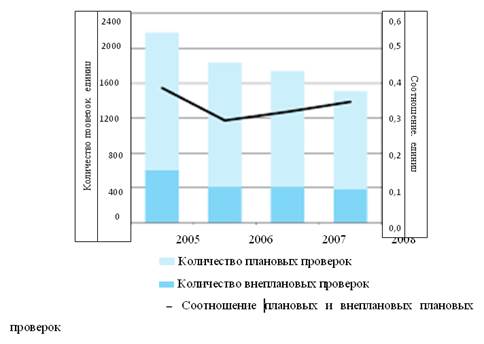 Рис.5. Динамка плановых и внеплановых инспекционных проверок