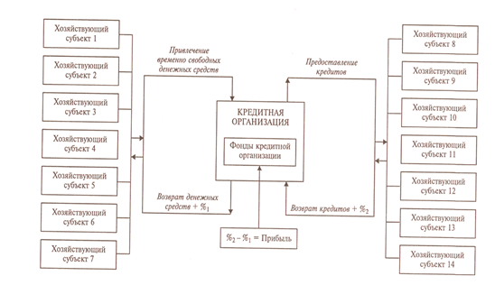 Как правовая категория банковский кредит представляет собой отдельный финансово-правовой институт, совокупность норм которого регулирует отношения по формированию кредитными организациями денежных фондов и предоставлению юридическим и физическим лицам денежных средств во временное пользование. Сущность банковского кредита можно отобразить схематично (рис. 1).
