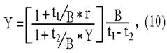 Соотношение (7) и (8) отражают ситуацию равновесия на рынке (т.е. "справедливое" распределение доходов в соответствии с рыночной ставкой Y и пропорционально сроку хранения бумаги каждой из сторон). Любое отклонение в ту или иную сторону повлечет за собой перераспределение дохода в пользу одного из участников сделки.