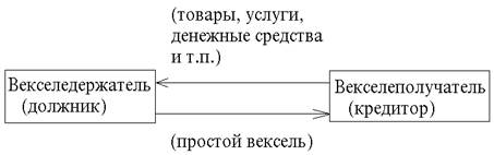 Что касается кредитной функции, то обычным являлось оформление товарного кредита переходным векселем по следующей схеме: поставщик товара (векселедержатель кредитного векселя) одновременно с заключением сделки выставляет переводной на покупателя с указанием себя, как получателя платежа по векселю (приказу векселедержателя).