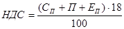 Налог на добавленную стоимость при ставке налога ННДС = 18% рассчитывается по формуле (3.26):