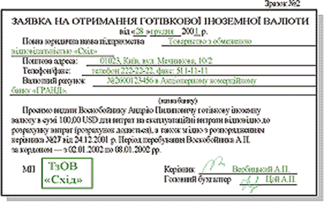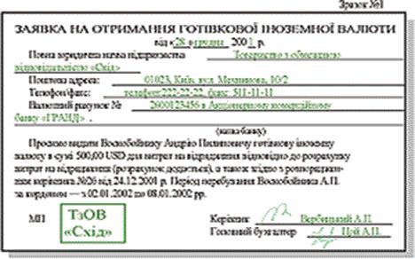 Наиболее распространенными случаями является получение наличной иностранной валюты с текущего счета на командировку и на эксплуатационные затраты за границей.