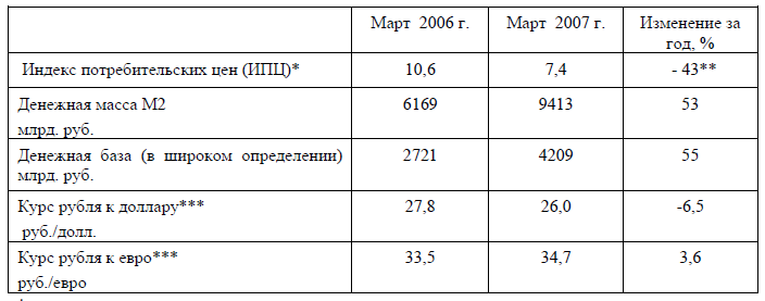 Первые месяцы года оказались исключительно удачными для российской экономики. Согласно данным Росстата, индекс выпуска товаров и услуг по базовым видам экономической деятельности, достаточно точно аппроксимирующий динамику ВВП, за январь—февраль 2007 года вырос на 8,8% (год назад аналогичный показатель за первый квартал составил лишь 4,2%), промышленное производство — на 8,6%, реальная зарплата — на 17,5%. Инвестиции в основной капитал буквально выстрелили, показав рост на 21,2% за первые два месяца года. Именно новую траекторию динамики инвестиций глава МЭРТ Герман Греф назвал ключевым фактором повышения официального прогноза роста ВВП на 2007 год с 6,2 до 6,5%.