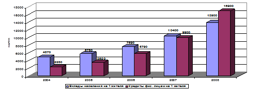 Рисунок 1.6 - Динамика вкладов и кредитов на душу населения