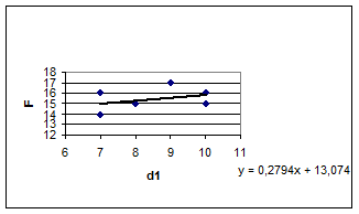 Регрессия d на f имеет вид: d = 0.2794f + 13.074. Следовательно, случайная величина остаточных колебаний е есть d – 0.2794f -13.074. Найдем вариации остатков, составив ряд значений е (табл. 3.3):