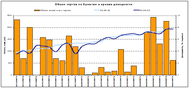 Рис. 2.9. Доходность и объем торгов на рынке государственных облигаций