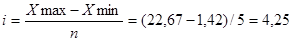 Найдем величину интервала для преобразования групп с равными интервалами по формуле: