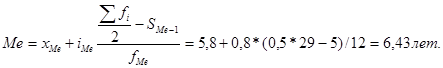 Медианный интервал находится в пределах 5,8-6,6 лет.