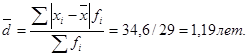 2.Среднее линейное отклонение вычисляется как взвешенное по частоте отклонение по модулю середин интервалов от средней арифметической величины:
