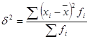 Дисперсия представляет собой средний квадрат отклонений индивидуальных значений признака (для данного примера – середин интервалов) от их средней величины. Расчет дисперсии производится по формуле: