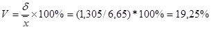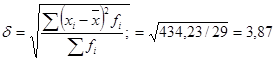 4. Коэффициент вариации – это относительный показатель вариации, равный процентному отношению среднего квадратического отклонения к средней арифметической: