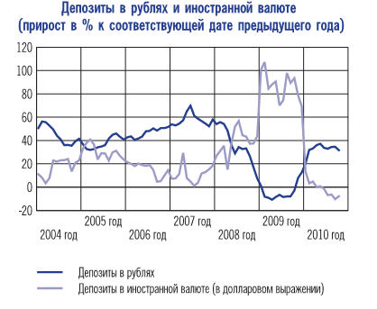 Таблица 3. Депозиты в рублях и иностранной валюте 2004 – 2010 гг.