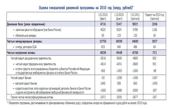 Таблица 4. Оценка показателей денежной программы на 2010 год