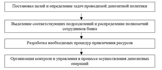На основе анализа сложившейся практики поведения банками депозитных операций предложена схема формирования депозитной политики коммерческого банка, которая представлена на рисунке 5.