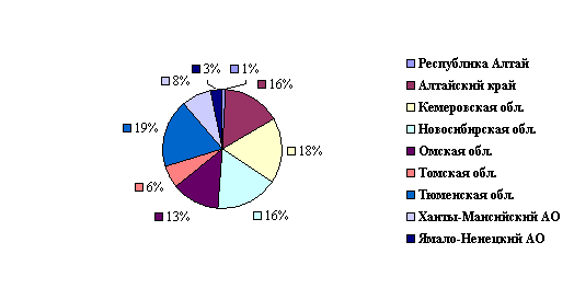 | Регион | Западно-Сибирский регион | Алтай | Алтайский край | Кемеровская обл. | Новосибирская обл. | Омская обл. | Томская обл. | Тюменская обл. | Ханты-Мансийский АО | Ямало-Ненецкий АО |