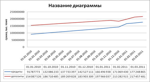 Рис.2 Динамика кредитов и депозитов с 01.01.10 по 01.03.11